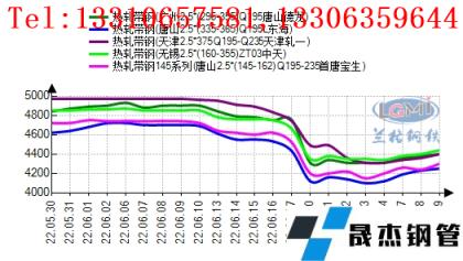 從區域價差走勢圖來看,國內市場355系,唐山至無錫的窄帶價差由上月同期210元/噸縮小到190元/噸,唐山至樂從的窄帶價差由上月同期的190元/噸擴大到240元/噸,目前個別地區受疫情影響,市場流通恢復緩慢。南方地區降雨較多,工地開工受阻,盤面寬幅震蕩波動,給商貿心態造成一定壓力,現貨市場價格多以下降為主,受制于供需矛盾的壓制,現貨市場交投積極性不高。雖當前部分無縫鋼管廠家減產消息流出,但減產力度一般。目前全國帶鋼庫存加速累計,超過100萬噸庫存體量,截至6月底全國帶鋼倉儲庫存總計112.97萬噸,市場卷帶銷售壓力凸顯。市場受多重因素影響,商貿信心偏弱。現階段南方庫存相對壓力偏小,整體市場心態相對平和,市場挺價意愿明顯,但受到北方市場價格影響,商家也有一定隨行調整。