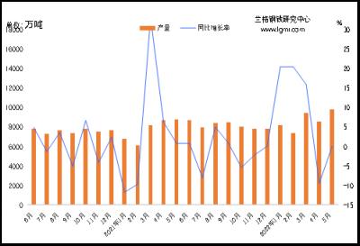 據(jù)國家統(tǒng)計(jì)局統(tǒng)計(jì),2022年1-5月份全國鐵礦石原礦總產(chǎn)量為42388.3萬噸,同比增長0.2%,5月份在疫情逐步得到控制后,國產(chǎn)鐵礦石產(chǎn)量開始出現(xiàn)穩(wěn)步增長。