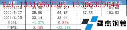 從焊鍍管品種來看,截至6月30日,上半年在統計11家管廠日均出貨量2.69萬噸,同比去年同期下降26.90%,同比2020年同期下降30.49%,其中6月環比上月增長1.32%,上半年高預期、高供應持續發酵,但需求受疫情等影響,持續后延,管廠日均出貨峰值4.2萬,為農歷春節前的冬儲階段。上半年在統計國內各區域貿易商日均出貨量峰值在3月初,均值下滑24.63%,其中6月處于上半年平均日出貨量中線上方水平,較均值增長9.19%,較年內峰值下滑17%。7月價格跌勢超出預期,終端實際需求釋放仍將有限,預計7、8月份仍是一個高庫低需的景象;同時,厚壁鋼管產業鏈虧損程度亦超預期,關注庫存的下降斜率變化。