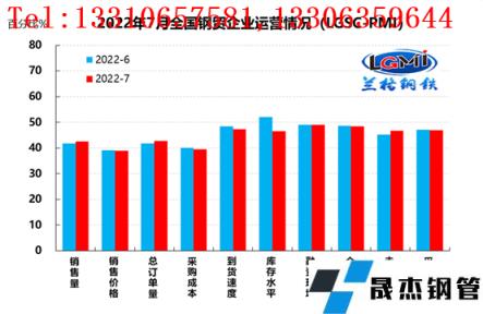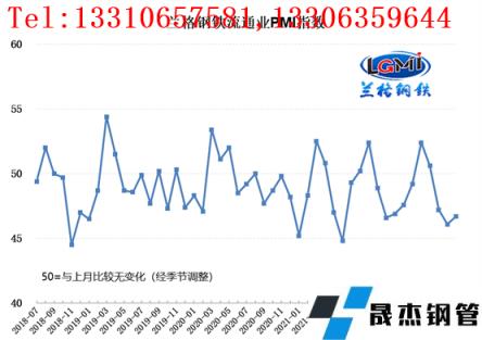 云商平臺(tái)統(tǒng)計(jì)發(fā)布的2022年7月份厚壁無(wú)縫鋼管流通業(yè)PMI總指數(shù)為46.7%,比上月回升0.6個(gè)百分點(diǎn),在收縮區(qū)間內(nèi)低位回升。從分類(lèi)指數(shù)看,構(gòu)成厚壁無(wú)縫鋼管流通業(yè)