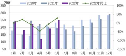 3月下旬開(kāi)始,國(guó)內(nèi)疫情沖擊超出預(yù)期,4月份汽車(chē)產(chǎn)銷(xiāo)量斷崖式下降,同比分別減少46.1%和47.6%,5月份疫情得到有效控制后產(chǎn)銷(xiāo)量恢復(fù)性增長(zhǎng),6月份汽車(chē)業(yè)供應(yīng)鏈進(jìn)一步恢復(fù),企業(yè)加快生產(chǎn),在購(gòu)置稅減半等一系列政策帶動(dòng)下,汽車(chē)消費(fèi)增長(zhǎng)動(dòng)力增強(qiáng),汽車(chē)銷(xiāo)量有明顯起色,當(dāng)月產(chǎn)銷(xiāo)量同比分別增長(zhǎng)28.2%和23.8%。