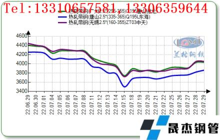 七月份國內(nèi)帶鋼市場呈現(xiàn)震蕩下行趨勢。月初帶鋼市場價格整體趨弱運行,低價資源成交尚可,期貨市場寬幅震蕩,終端逢低補庫,高價成交疲軟。月中市場價格持續(xù)下行,整體成交偏弱,淡季效應(yīng)顯現(xiàn)導(dǎo)致市場價格大幅走低,下游商貿(mào)情緒觀望為主。北方地區(qū)小窄帶方面,月末隨期貨震蕩走高,倒掛情況稍有緩解,為維持訂單及正常運轉(zhuǎn),被動維持生產(chǎn)。7月帶鋼庫存持續(xù)小幅下降,無縫鋼管廠家產(chǎn)量也有所下降,需求端仍未得到改善。南方地區(qū)因疫情反復(fù),加之目前正處于傳統(tǒng)淡季,商貿(mào)多以觀望為主,隨期貨盤整運行,市場商貿(mào)心態(tài)不穩(wěn),多以降庫為主,終端下游市場仍不景氣,觀望態(tài)度濃厚,實際需求延續(xù)偏弱,加之下游開工維持低位,帶鋼底部支撐不足。截止至7月29日,華北地區(qū)唐山小窄帶報價主流為3950元/噸,唐山355系窄帶鋼主流報價為3860元/噸,天津355系窄帶主流報價為4130元/噸,華東地區(qū)無錫355系窄帶主流報價為4050元/噸,華南地區(qū)廣州355系窄帶主流報價為4030元/噸。