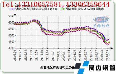 7月份(7.01-7.29),西北地區焊管鍍鋅管價格跌幅繼續擴大。云商平臺監測數據顯示,截至2022年7月29日,焊管方面:西安地區4寸(3.75mm)焊管價格為4840元(噸價,下同)比上月同期降530元,蘭州地區4寸(3.75mm)焊管價格為4400-4420元比上月同期降370元,銀川地區4寸(3.75mm)焊管價格為4430-4450元比上月同期降580元,烏魯木齊地區4寸(3.75mm)焊管價格為4560-4640元比上月同期降550元。鍍鋅管方面:西安地區4寸(3.75mm)鍍鋅管價格為5060-5350元比上月同期降350-540元;蘭州地區4寸(3.75mm)鍍鋅管價格為5180-5240元比上月同期降610元;銀川地區4寸(3.75mm)焊管價格為5160-5220元比上月同期降580元;烏魯木齊地區4寸(3.75mm)焊管價格為5360-5440元比上月同期降560元。